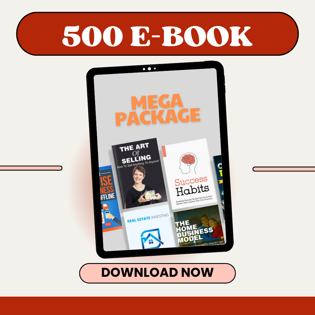 Calling all entrepreneurs, small business owners, and digital marketers! Unlock the ultimate toolkit for success with our exclusive 500 business eBooks collection. This bundle is packed with valuable resources covering a wide variety of business topics – from marketing, finance, and management, to entrepreneurship, productivity, and personal development. Perfect for anyone looking to boost their knowledge, skills, and profits in today’s competitive business world.
